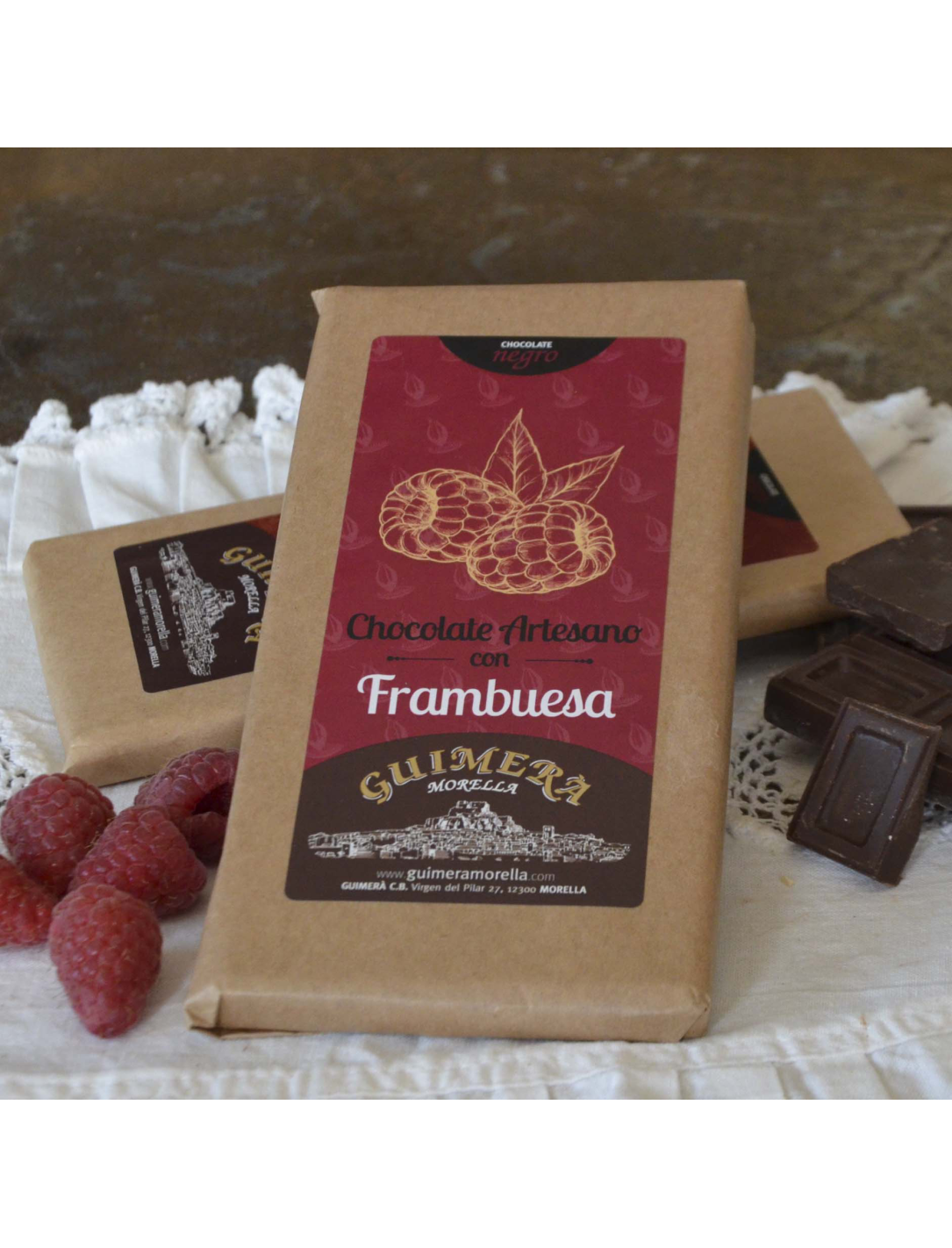 Ingredientes: Pasta de cacao, azúcar, manteca de cacao, cacao desgrasado en polvo, lecitina de SOJA y aroma natural de frambuesa. Contenido mínimo de cacao 70%. Puede contener trazas de LECHE. SIN GLUTEN.