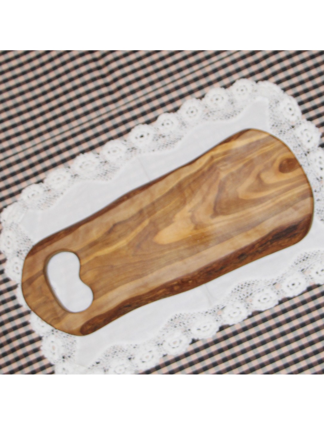 Rustic cutting board with handle in olive wood. Very practical for use in the kitchen or at the table.