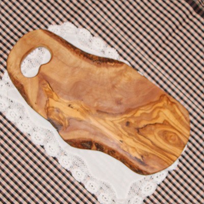 Rustic cutting board in olive wood. Very practical for use in the kitchen or at the table.