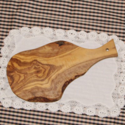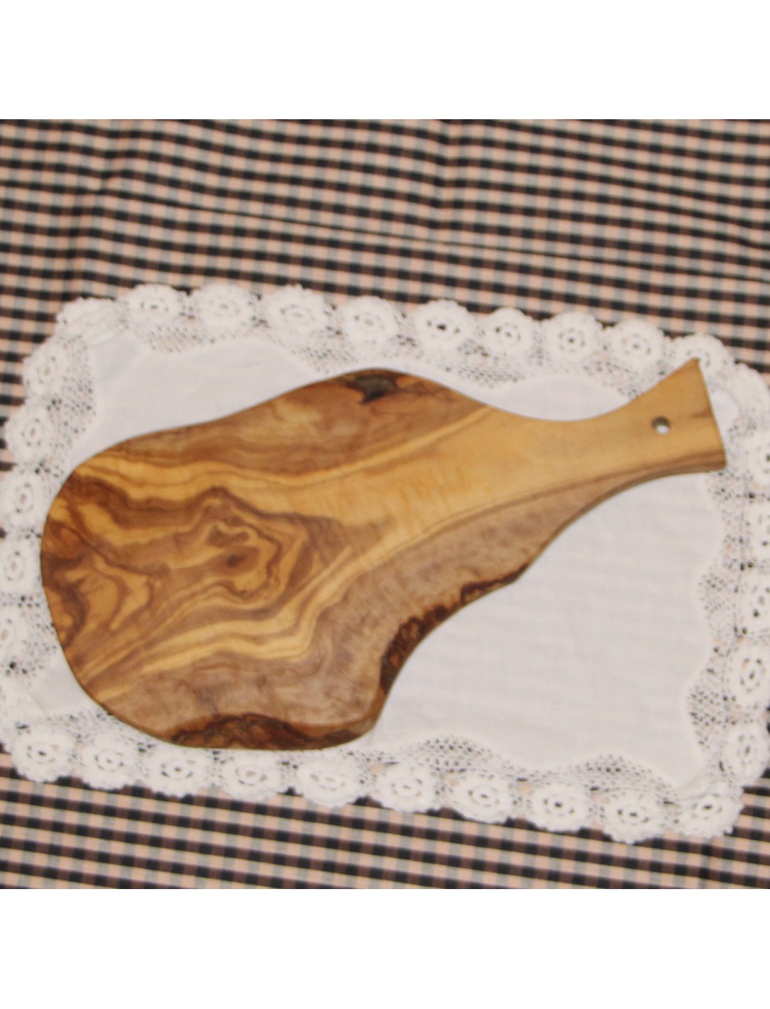 Rustic cutting board in olive wood. Very practical for use in the kitchen or at the table.