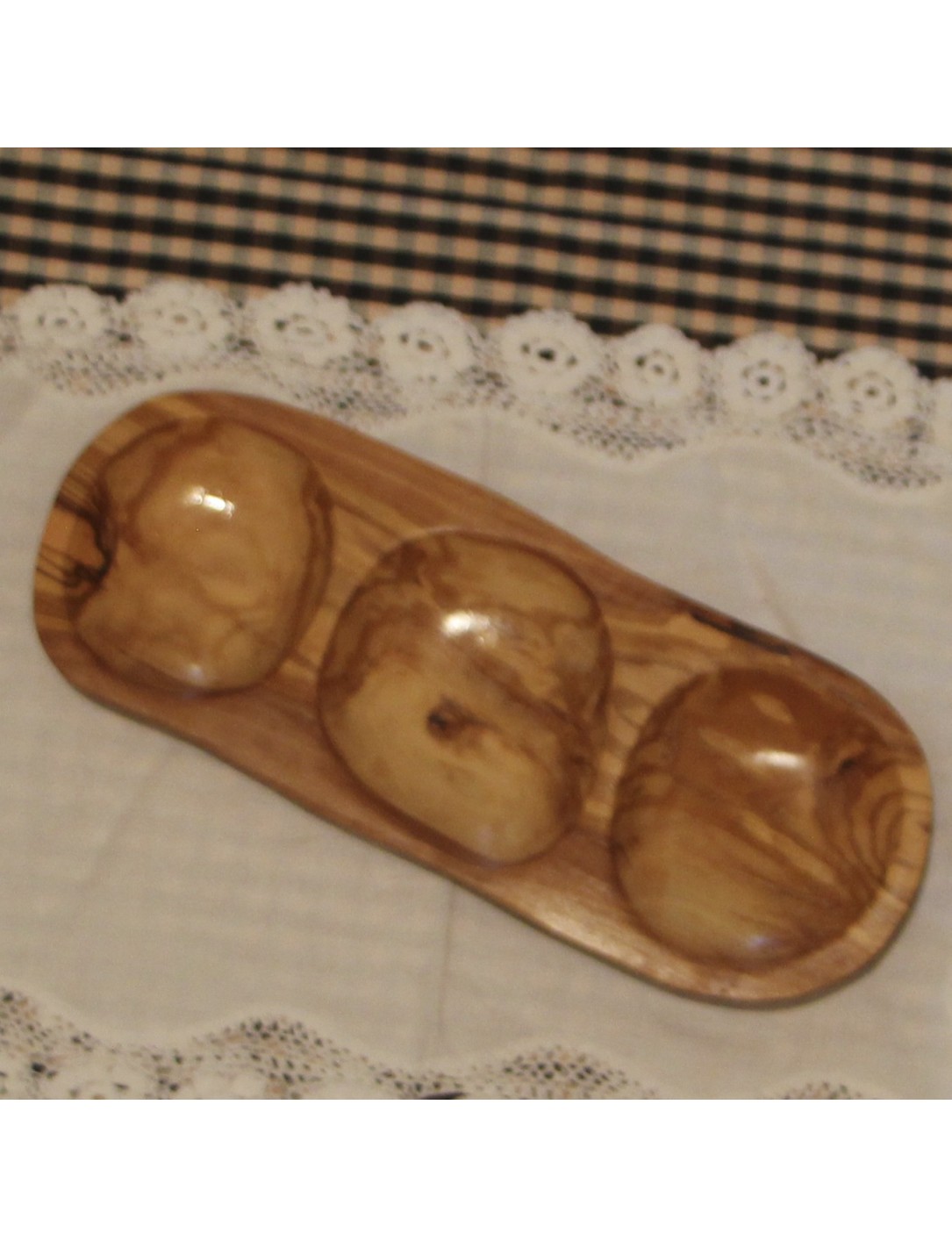 Cuenco triple madera olivo